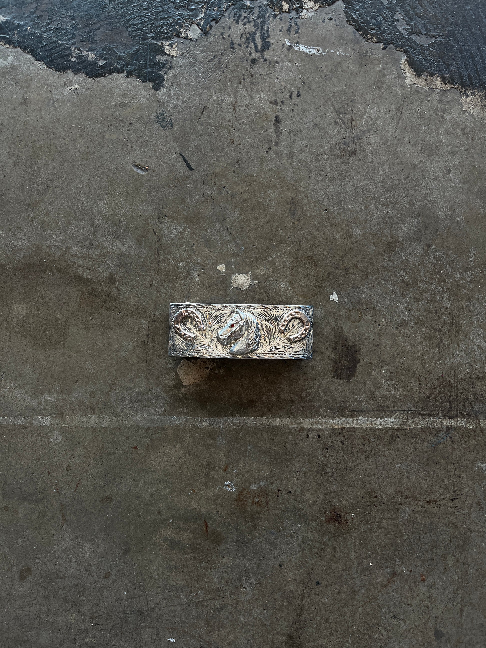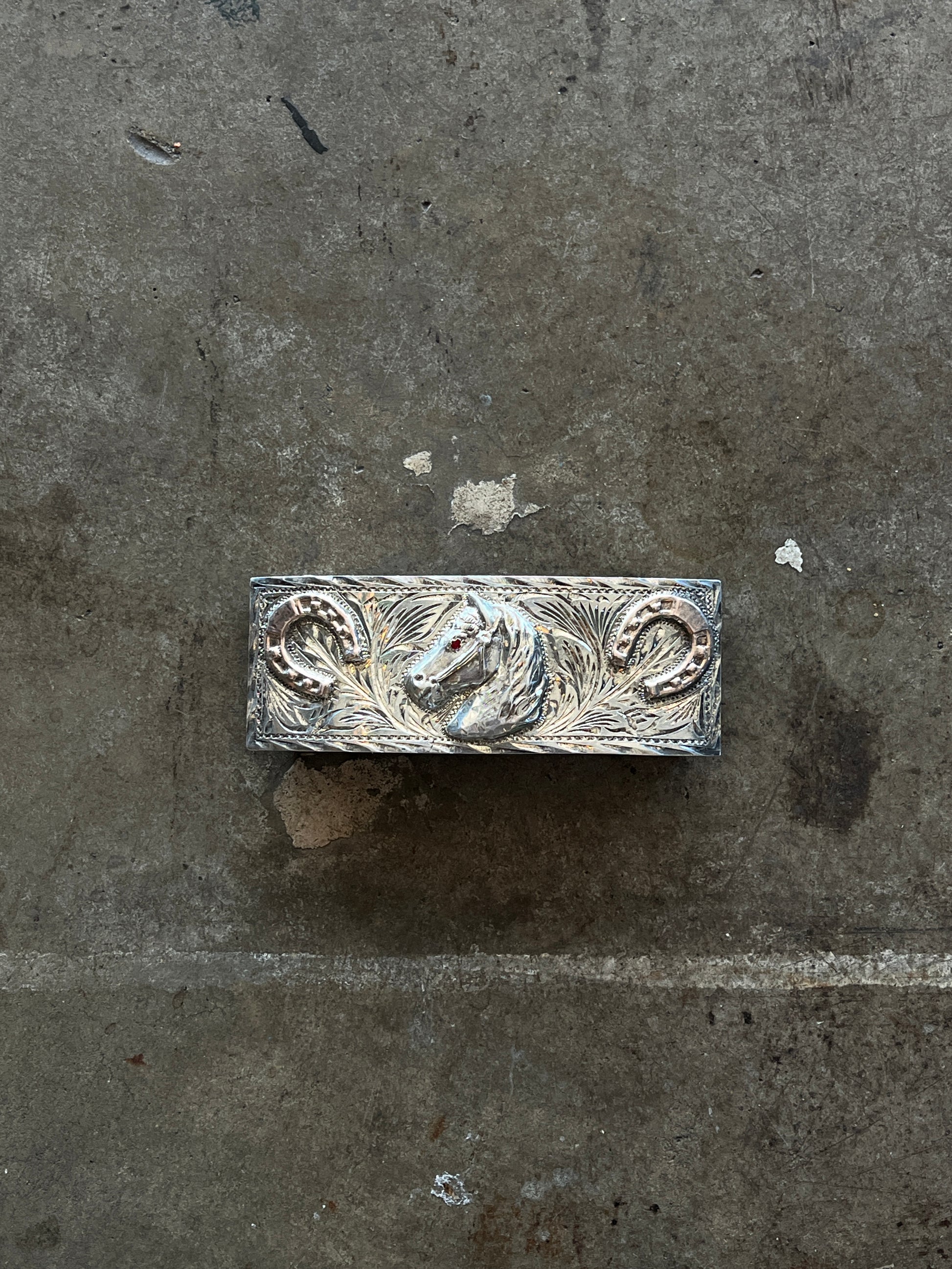 Sterling Silver Etched Horse Belt Buckle