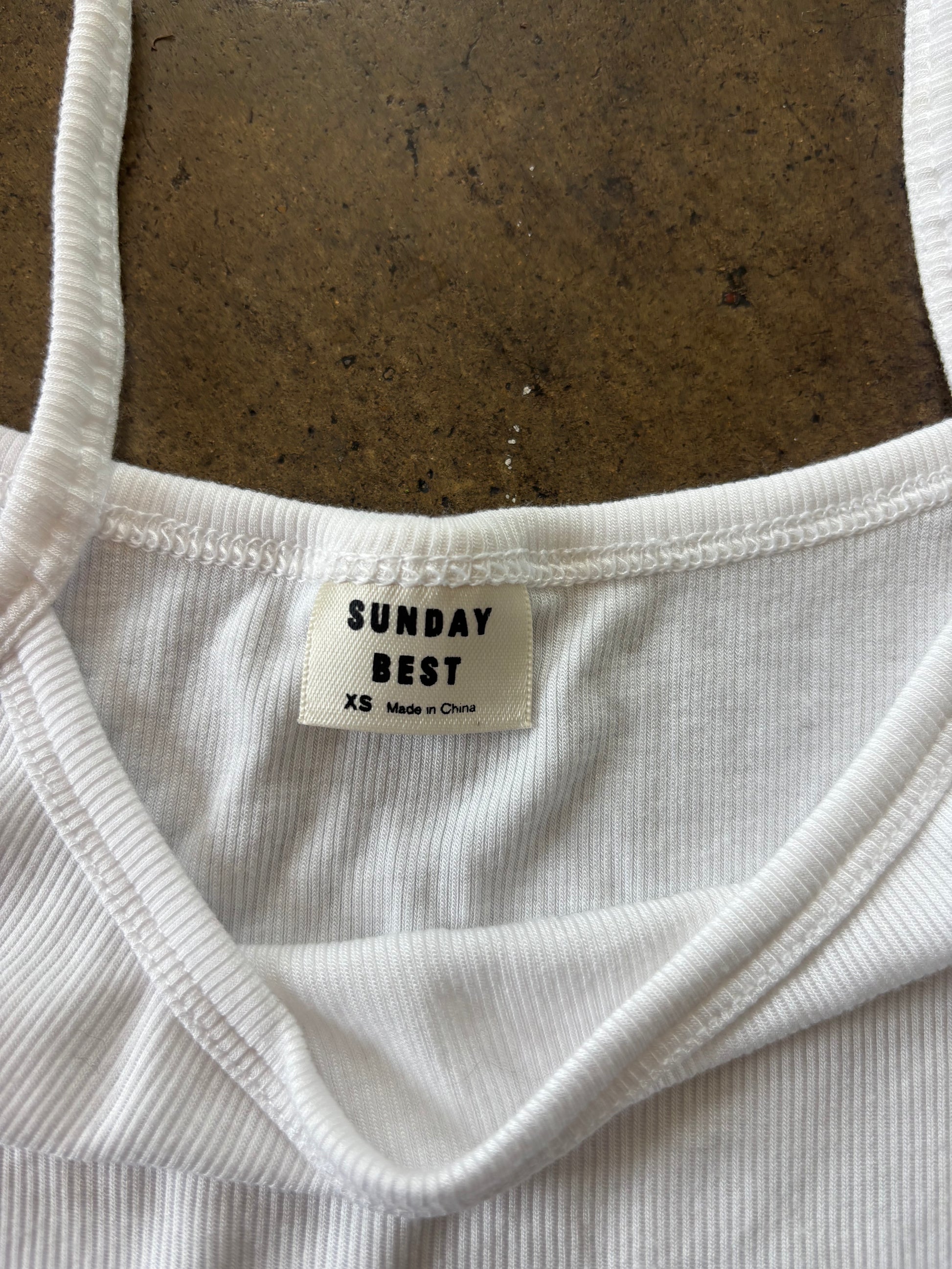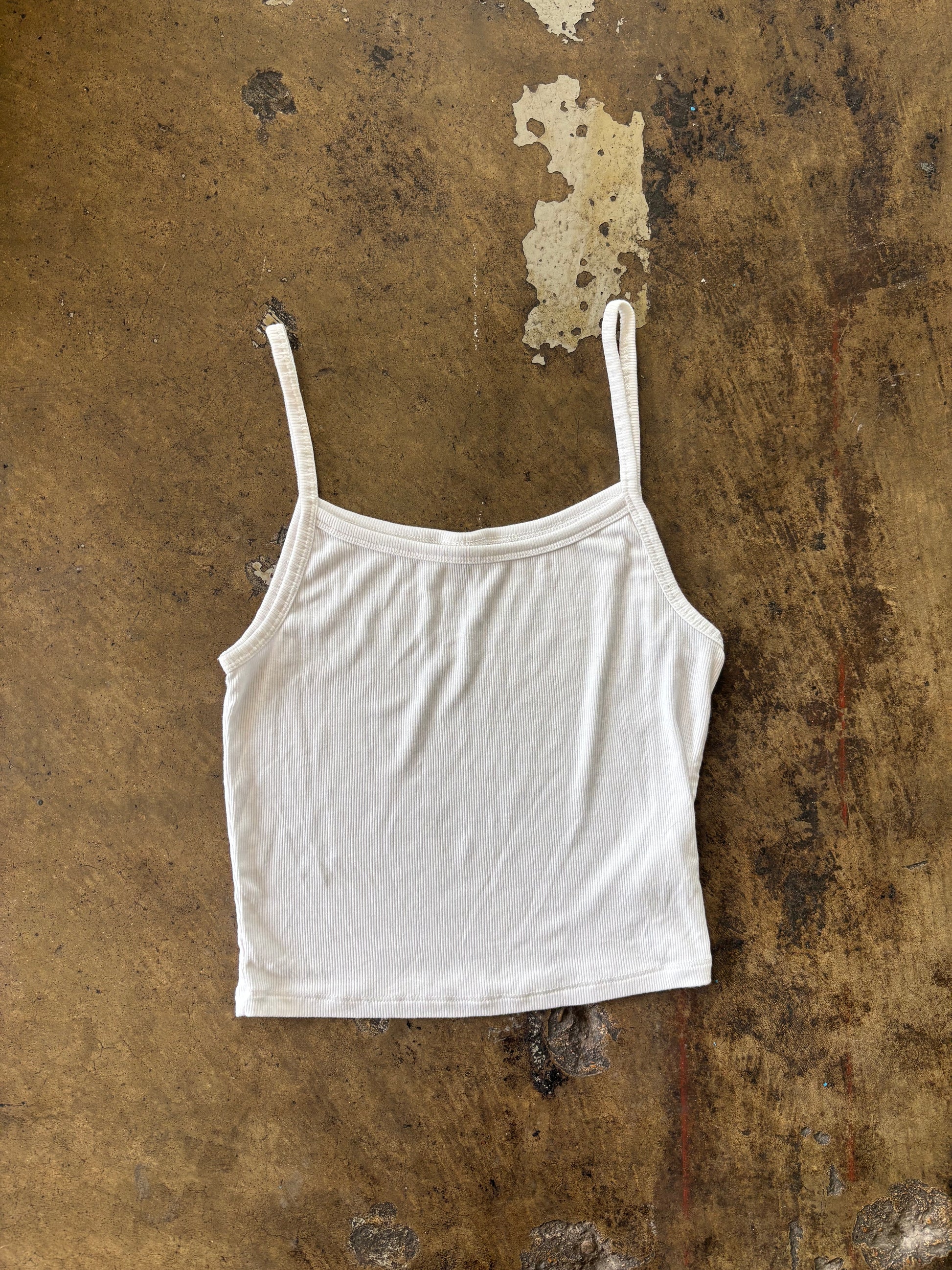 White Ribbed Spaghetti Strap Tank